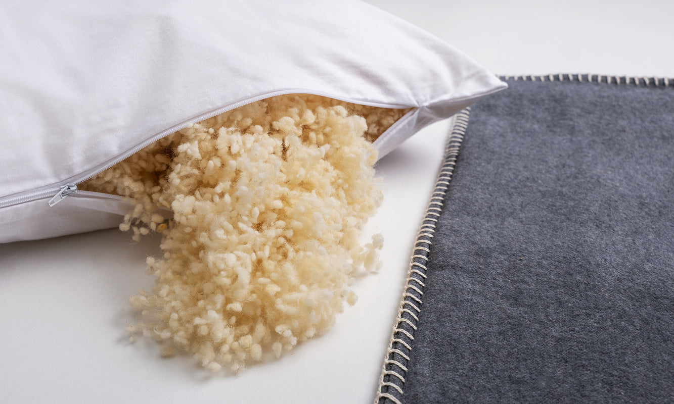 Wärmende Schafschurwolle wird mit duftenden Zirbenflocken veredelt - für ein entspanntes Schlafgefühl.