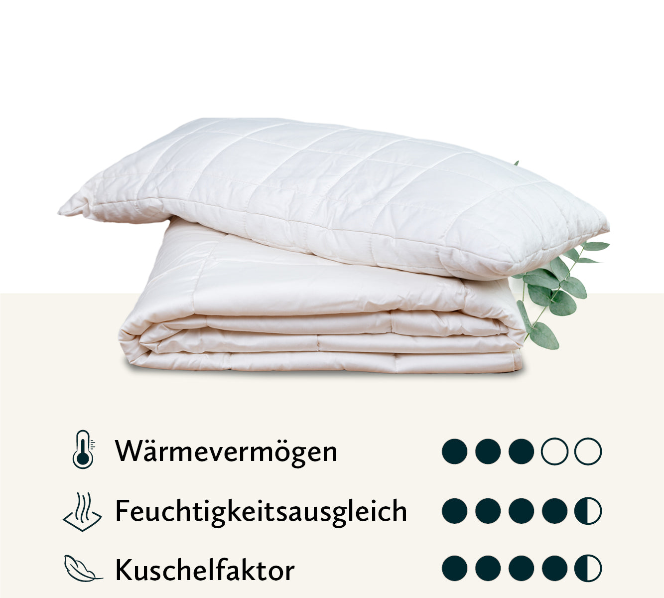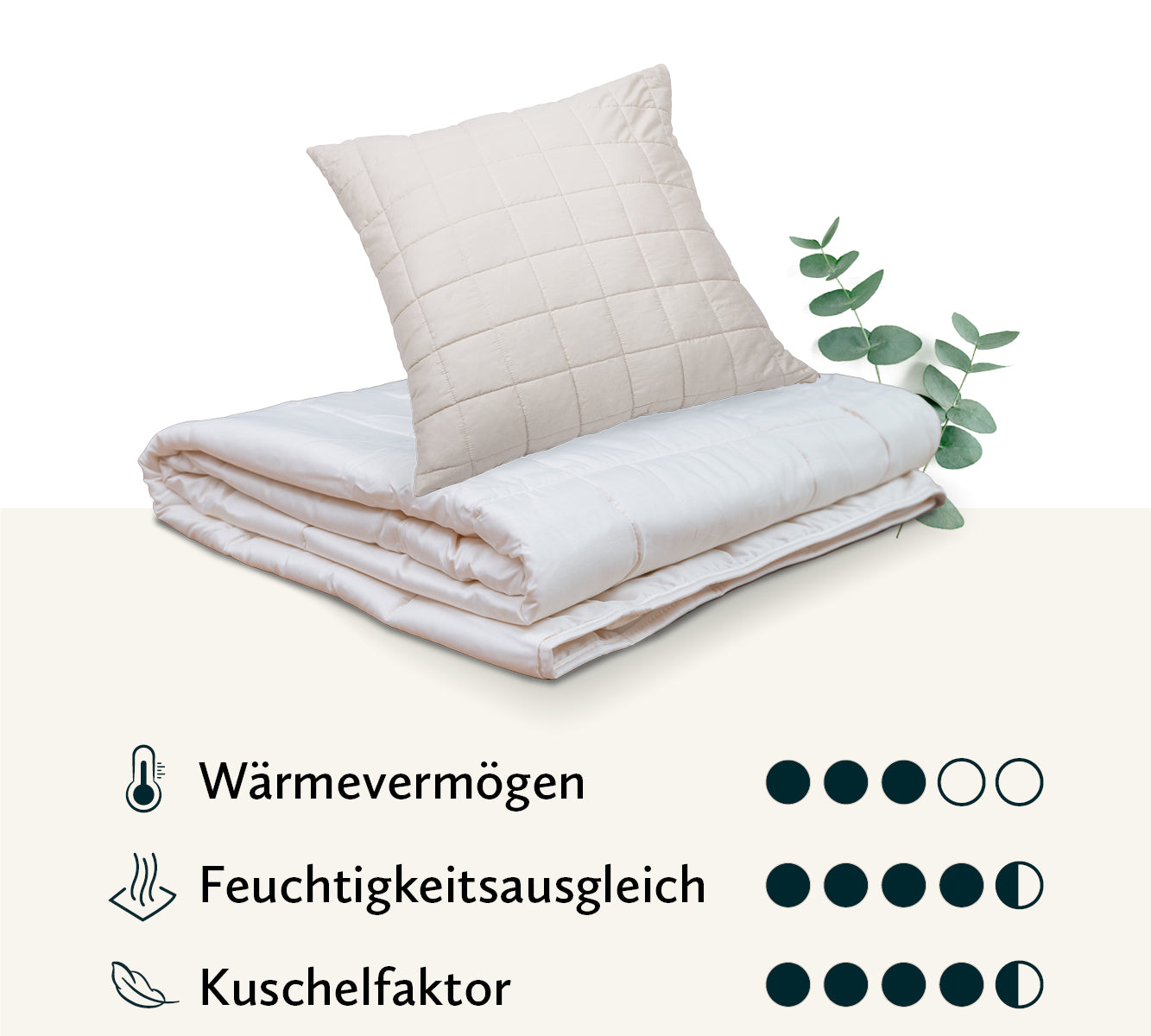 Dein Kopfkissen und Deine Bettdecke begleiten Dich die ganze Nacht. Deshalb ist es wichtig, dass Du Sie nach Deinen Schlafgewohnheiten auswählst. Wir haben für Dich exklusive Sets aus feinsten Naturmaterialien zusammengestellt.