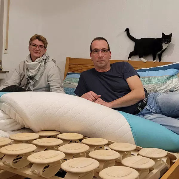 Tellersysteme wie unser RELAX 2000 bieten Dir ein besonders punktelastisches Liegegefühl. Die beweglichen 3D-Teller passen sich exakt an Deine Körperkonturen an – und das funktioniert am besten mit einer Matratze, die ebenfalls flexibel und anpassungsfähig ist. Ideal sind Matratzen aus Naturlatex oder hochwertigem Kaltschaum, da sie jede Bewegung der Teller fein mitgehen.