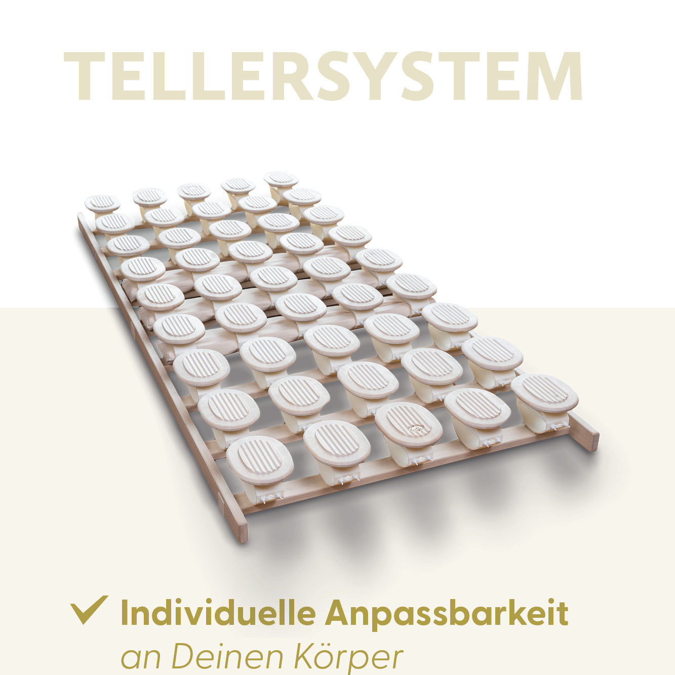 Das RELAX 2000 Tellersystem setzt auf modernste Ergonomie: Statt Leisten kommen hier bewegliche Holzteller zum Einsatz. Jeder einzelne Teller passt sich dreidimensional Ihrem Körper an – unabhängig von Schlafpositionen oder Dem Gewicht.