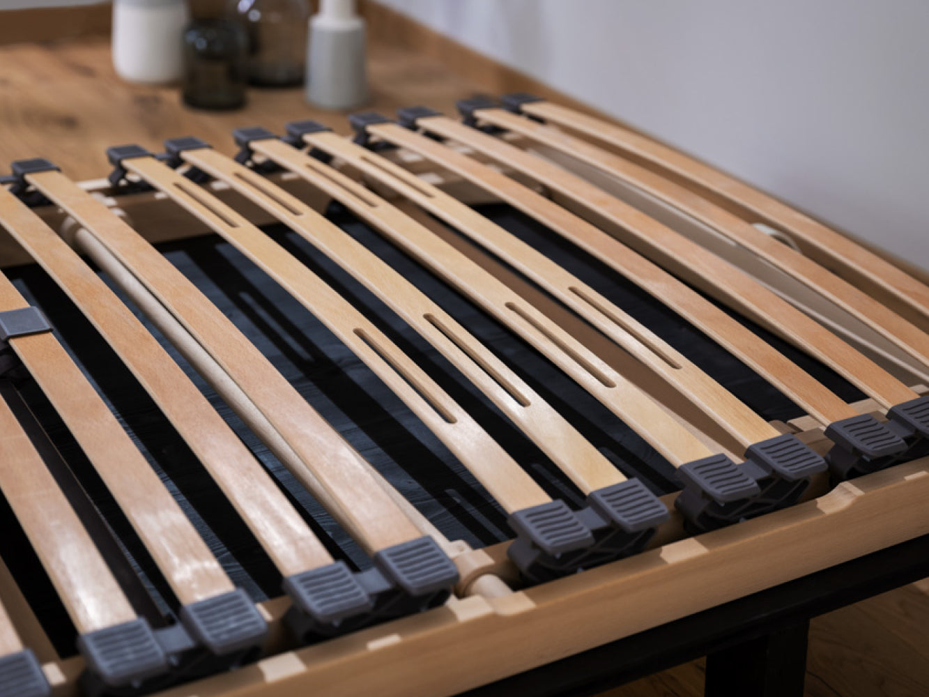 Der Lattenrost besteht aus naturbelassenem, hochwertigen Buchmassivholz.